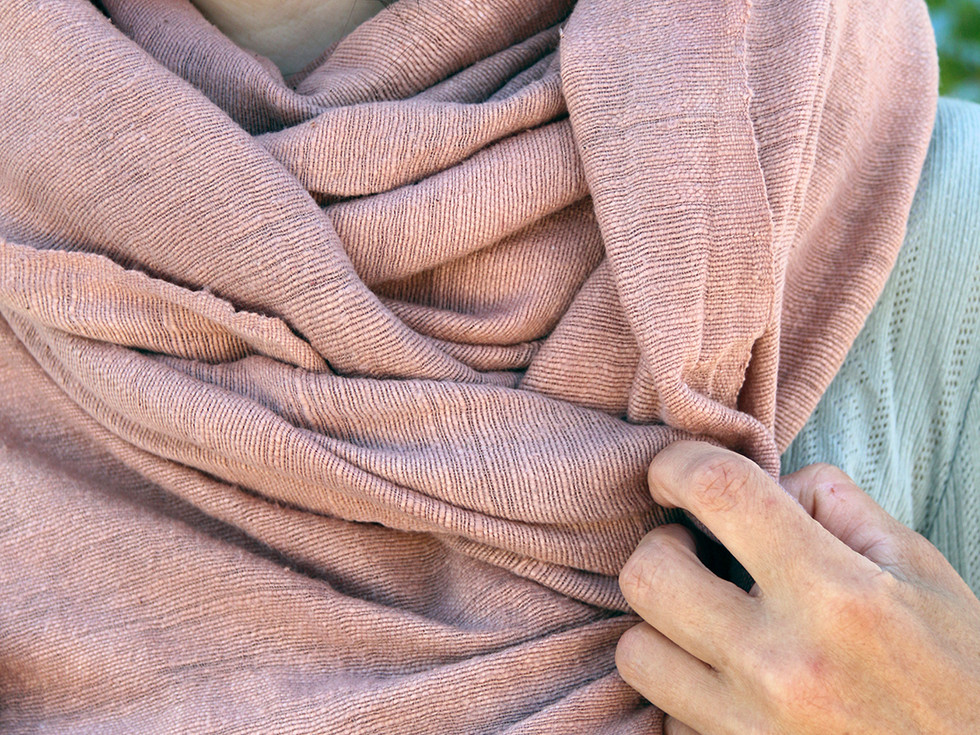כביסה ביד, בנפרד מבדים אחרים, או כביסה עדינה, 30 מעלות (רצוי בנפרד, פן יוריד צבע), ייבוש בצל.