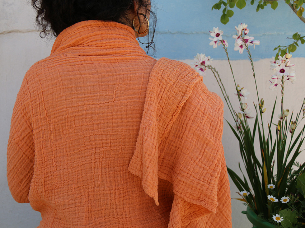 כביסה ביד, בנפרד מבדים אחרים, או כביסה עדינה, 30 מעלות (רצוי בנפרד פן יוריד צבע), ייבוש בצל.