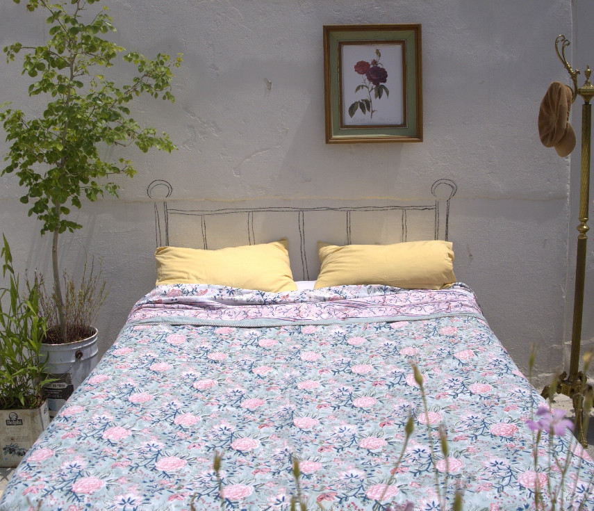 שמיכת כותנה רכה, צבעונית ומפנקת בגווני תכלת וורוד.